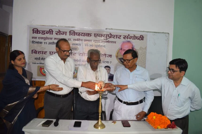 पटना। बिहार एक्युप्रेशर योग कॉलेज द्वारा बिस्कोमान कॉलोनी गोलंबर स्थित परिसर में किडनी रोग विषयक एक्युप्रेशर संगोष्ठी का आयोजन किया गया। इस अवसर पर एक्युप्रेशर महागुरु डॉ. सर्वदेव प्रसाद गुप्त ने कहा कि किडनी फेलियर में एक्युप्रेशर चिकित्सा अत्यंत लाभदायक साबित हो रही है।