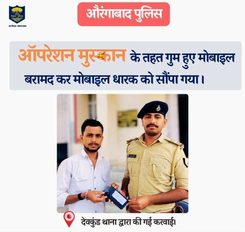 औरंगाबाद। आमजन की समस्याओं के समाधान और पुलिस के प्रति भरोसा मजबूत करने की दिशा में औरंगाबाद पुलिस द्वारा चलाया जा रहा ‘ऑपरेशन मुस्कान’ लगातार सार्थक साबित हो रहा है। इस अभियान के तहत गुम हुए मोबाइल फोन को बरामद कर उनके वास्तविक मालिकों को लौटाया जा रहा है, जिससे लोगों के चेहरों पर फिर से मुस्कान लौट रही है।