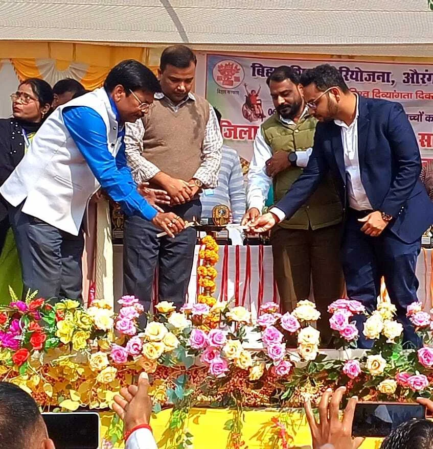 औरंगाबाद। जिला मुख्यालय स्थित गेट स्कूल के मैदान में जिले के सभी प्रखंडों से आए दिव्यांग बच्चों, उनके शिक्षकों एवं अभिभावकों की उपस्थिति में धूमधाम से अंतर्राष्ट्रीय दिव्यांगजन दिवस मनाया गया। समारोह का उद्घाटन जिला कार्यक्रम पदाधिकारी भोला कुमार कर्ण, डीपीएम अनवर आलम, डीपीओ रवि रौशन, डीपीओ अमृतेश आर्यन एवं प्रधानाध्यापक उदय कुमार सिंह ने संयुक्त रूप से दीप प्रज्वलन कर किया।