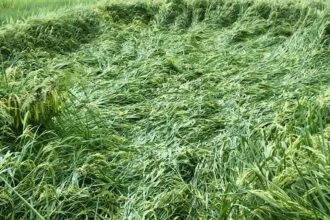 तेज हवाओं के साथ बारिश से धान की फसल गिरी, किसानों की बढ़ी परेशानी