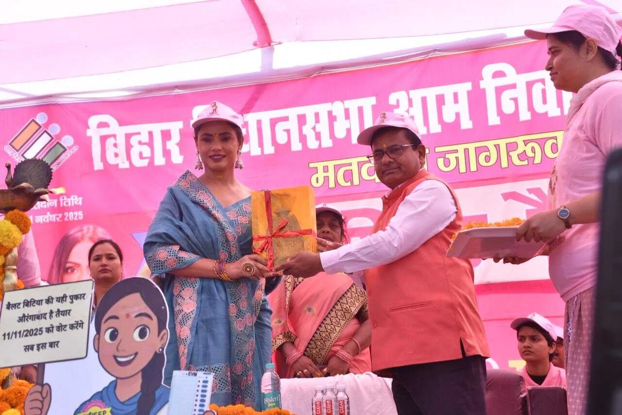औरंगाबाद। बिहार विधानसभा आम निर्वाचन 2025 के तहत जिला प्रशासन, औरंगाबाद द्वारा स्वीप अभियान के अंतर्गत आज कुटुम्बा प्रखंड में एक भव्य “पिंक रैली” का आयोजन किया गया। इस कार्यक्रम का शुभारंभ जिला निर्वाचन पदाधिकारी-सह-जिलाधिकारी श्रीकांत शास्त्री की उपस्थिति में हुआ। रैली में विशेष रूप से शामिल हुईं बिहार स्वीप आइकन एवं प्रसिद्ध फिल्म अभिनेत्री नीतू चंद्रा ने अपने प्रेरक संदेश के माध्यम से महिलाओं और युवाओं को लोकतंत्र के इस महापर्व में सक्रिय भागीदारी सुनिश्चित करने का आह्वान किया।