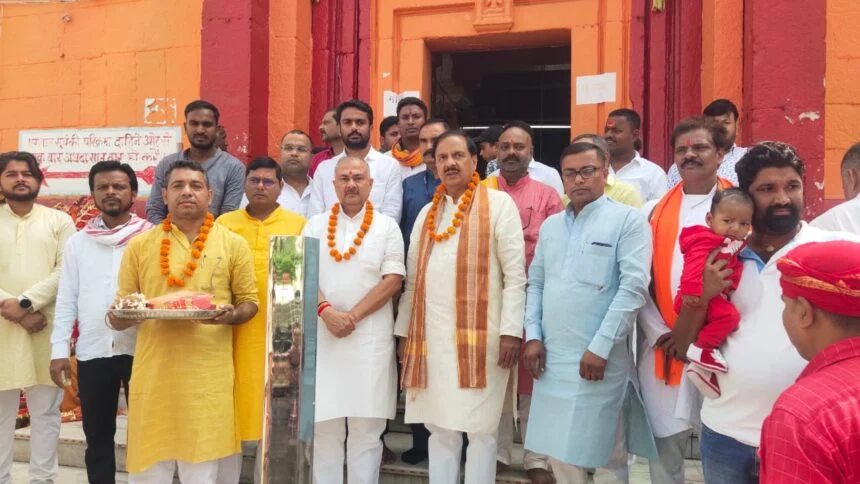 औरंगाबाद। देव सूर्य मंदिर में रविवार को भारत सरकार के पूर्व केन्द्रीय राज्य मंत्री सह उत्तर प्रदेश लोकसभा क्षेत्र गौतम बुद्ध नगर से सांसद डॉ. महेश शर्मा एवं भाजपा के पूर्व सांसद सुशील कुमार सिंह दर्शन किए। देव पहुँचने पर लोगों द्वारा उनका गाजे बाजे के साथ भव्य स्वागत अभिनंदन किया गया एवं देव सूर्य मंदिर न्यास परिषद के सदस्यों द्वारा अंग वस्त्र देकर स्वागत अभिनन्दन किया गया।