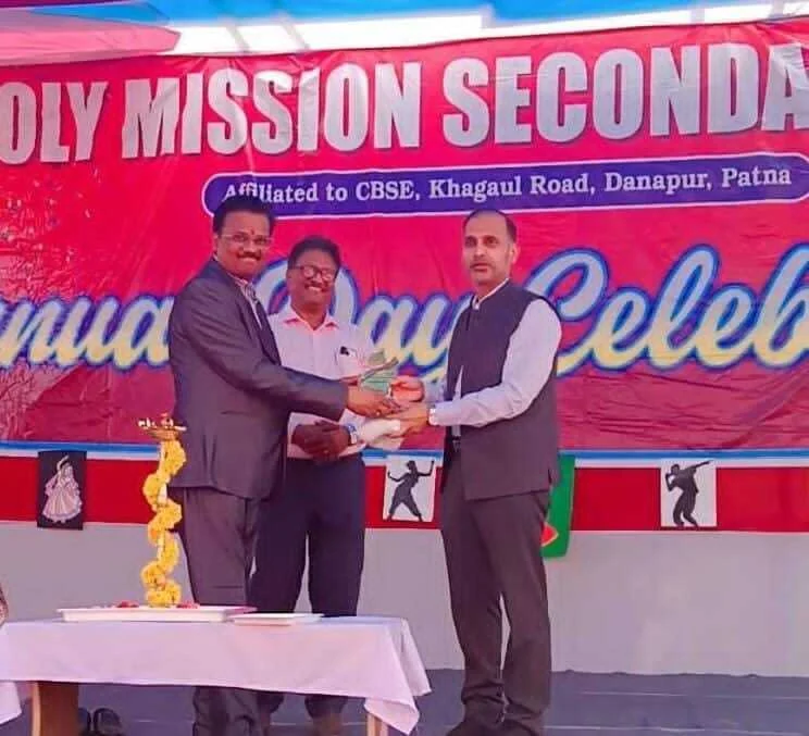 पटना। खगौल स्थित होली मिशन सेकेंडरी स्कूल में वार्षिक उत्सव अत्यंत हर्षोल्लास, गरिमा एवं उत्साह के साथ आयोजित किया गया। कार्यक्रम के मुख्य अतिथि वरिष्ठ आईएएस दिवेश सेहरा (सचिव ग्रामीण कार्य विभाग बिहार) ने दीप प्रज्वलित कर समारोह का विधिवत शुभारंभ किया। विद्यालय के चेयरमैन राजेश कुमार ने मुख्य अतिथि को शॉल एवं मोमेंटो भेंट कर सम्मानित किया। इस अवसर पर विद्यालय की अकादमिक निदेशिका, प्राचार्य मुकेश कुमार सहित उप प्राचार्य, अकादमिक कोऑर्डिनेटर, शिक्षकगण, अभिभावक एवं अनेक गणमान्य अतिथि उपस्थित रहे।