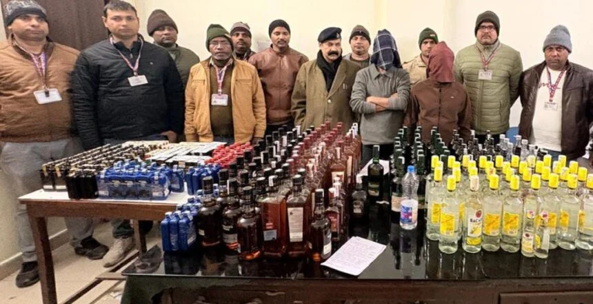 जांच के दौरान दोनों के पास चार बड़े झोले और पांच पिट्ठू बैग भरे हुए अवस्था में पाए गए। पूछताछ में पकड़े गए व्यक्तियों ने अपना नाम विकास कुमार उम्र 25 वर्ष, पिता राजू चौधरी, निवासी वार्ड संख्या 02, छोटकी डेल्हा, थाना डेल्हा, जिला गया तथा अजय कुमार उम्र 24 वर्ष, पिता स्वर्गीय सुरेन्द्र पासवान, निवासी वार्ड संख्या 18, दुल्हीनगंज लेन बाटा मोड़, थाना कोतवाली, जिला गया बताया। जब उनके कब्जे में मिले झोले और बैग के संबंध में पूछताछ की गई तो दोनों ने बताया कि इनमें शराब है, जिसे वे उत्तर प्रदेश से लेकर आए हैं। इसके बाद मौके पर विधिवत कार्रवाई करते हुए झोले और बैग की तलाशी ली गई, जिसमें विभिन्न ब्रांड की विदेशी शराब कुल 161.670 लीटर बरामद की गई।