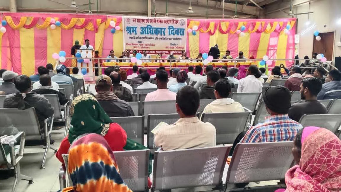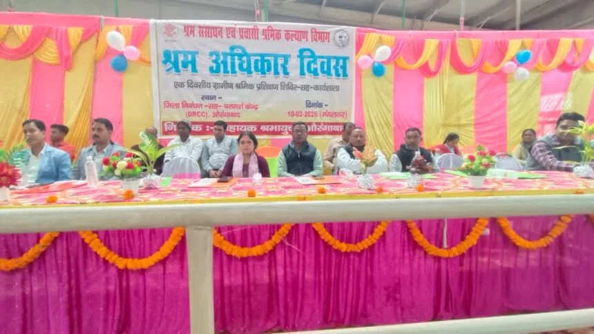 औरंगाबाद। आज DRCC के सभाकक्ष में श्रम संसाधन एवं प्रवासी श्रमिक कल्याण विभाग द्वारा श्रम अधिकार दिवस सह ग्रामीण प्रशिक्षण शिविर का आयोजन किया गया। कार्यक्रम की अध्यक्षता विनोद कुमार, उप श्रमायुक्त (मगध), गया जी के द्वारा की गई। कार्यक्रम का शुभारंभ दीप प्रज्वलित कर बिहार गीत के साथ किया गया। मंच का संचालन संजीव कुमार एवं विजेंद्र सिंह श्रम प्रवर्तन पदाधिकारी के द्वारा किया गया। शिविर में श्रम संसाधन एवं प्रवासी श्रमिक कल्याण विभाग द्वारा संचालित विभिन्न अधिनियम एवं योजनाओं के संबंध में विस्तारपूर्वक जानकारी दी गई।