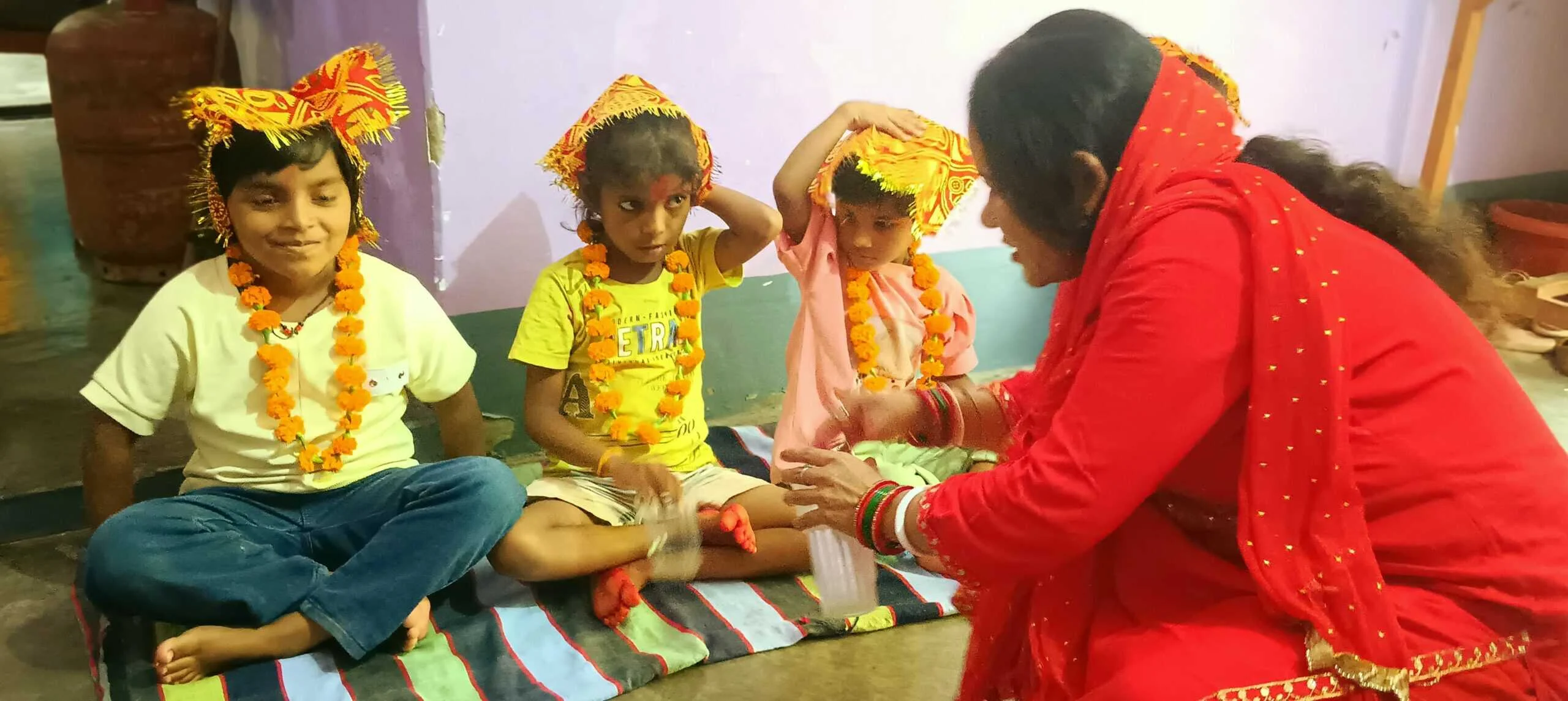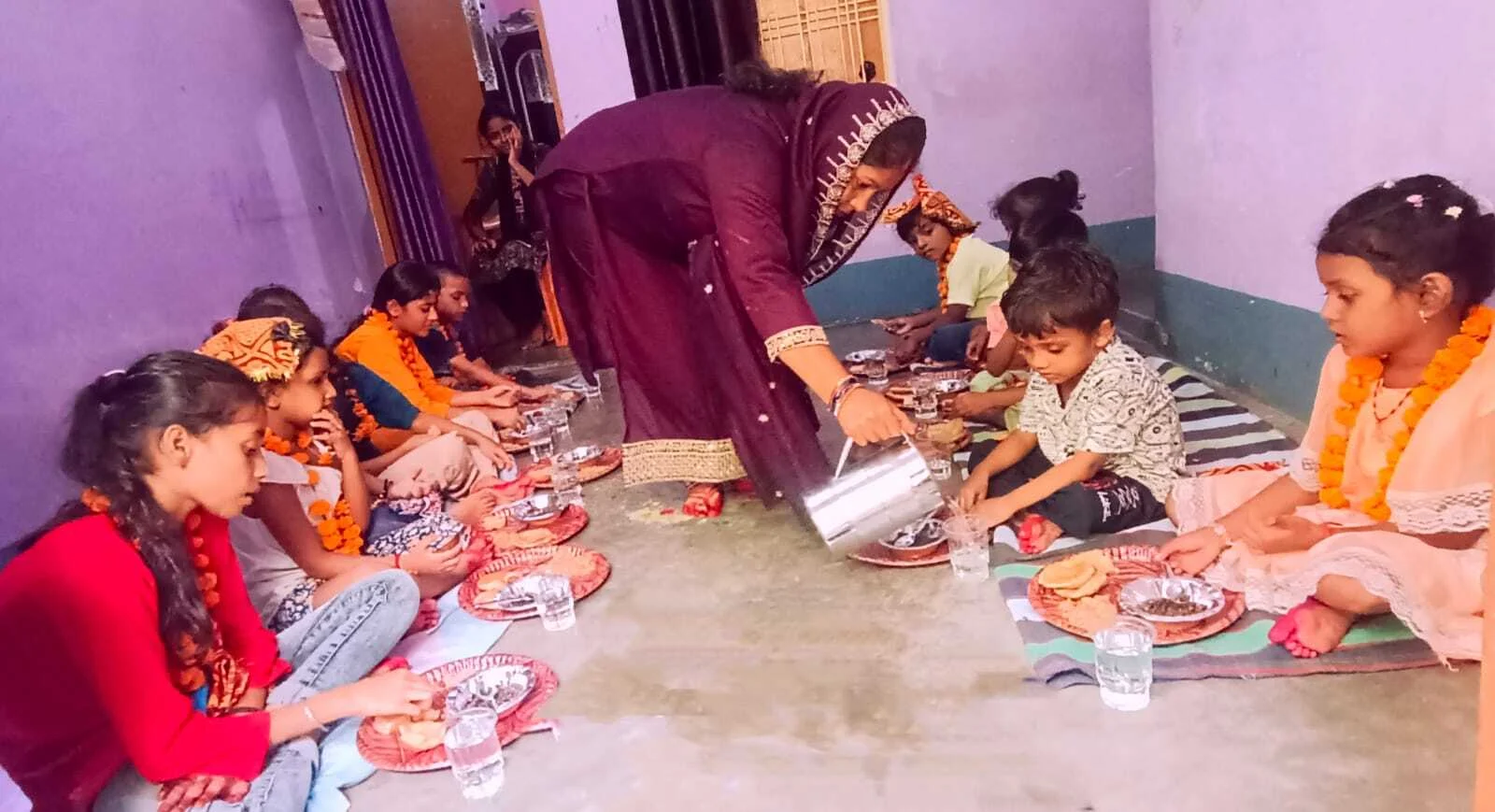 नवरात्रि के अंतिम दिन कन्या भोज का किया गया आयोजन