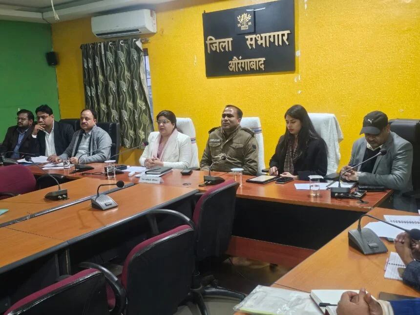 औरंगाबाद। आज समाहरणालय स्थित सभाकक्ष में जिला पदाधिकारी अभिलाषा शर्मा की अध्यक्षता में मुख्यमंत्री की प्रगति यात्रा के दौरान औरंगाबाद जिले में की गई घोषणाओं के क्रियान्वयन की प्रगति की समीक्षा हेतु बैठक आयोजित की गई। बैठक में पथ निर्माण, भवन निर्माण, सिंचाई, स्वास्थ्य, नगर विकास सहित संबंधित विभागों के पदाधिकारियों द्वारा योजनावार अद्यतन प्रगति से जिला पदाधिकारी को अवगत कराया गया।