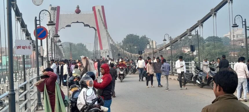 नए साल के जश्न को लेकर पुनपुन लक्ष्मण झूला पर घूमने वालों की उमड़ी भीड़