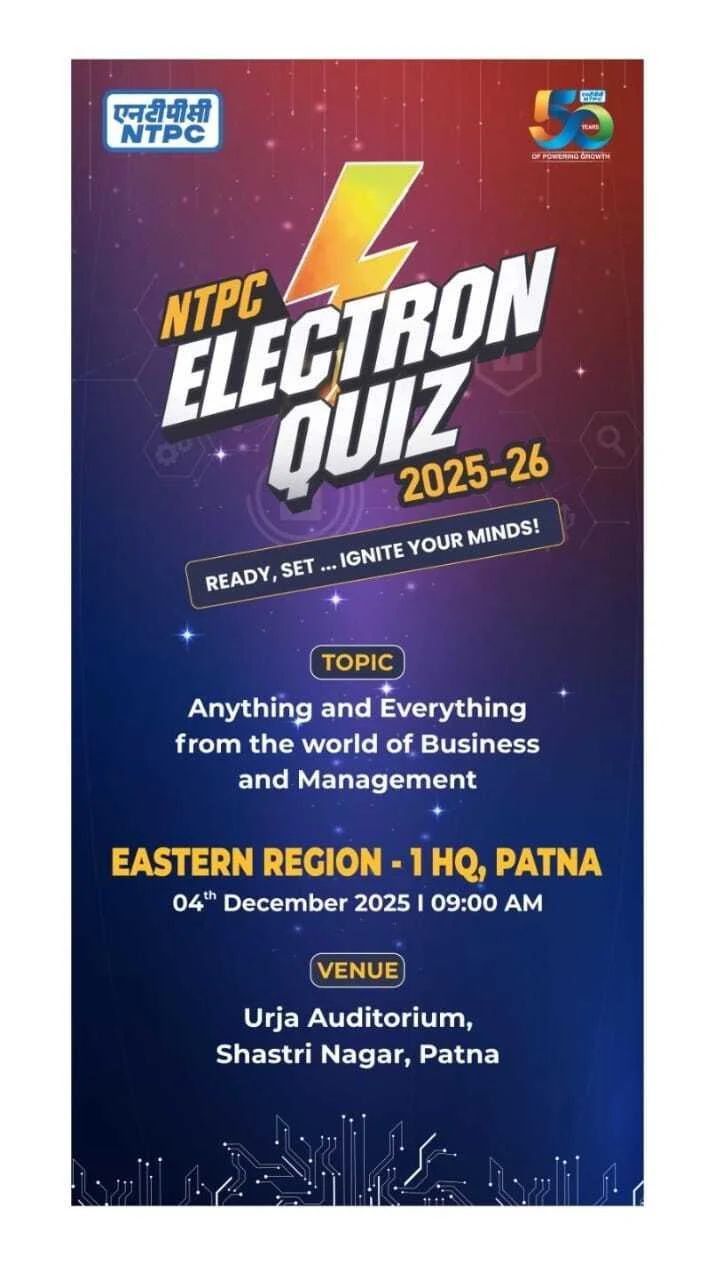 एनटीपीसी इलेक्ट्रॉन क्विज 2025-26 पटना रीजनल राउंड का आयोजन कल