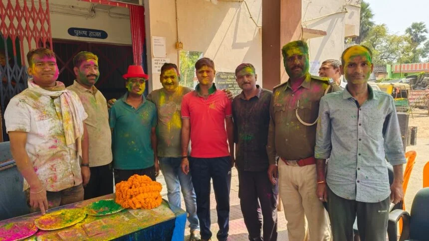 ओबरा थाना परिसर में पुलिस और ग्रामीणों ने मिलकर मनाई होली