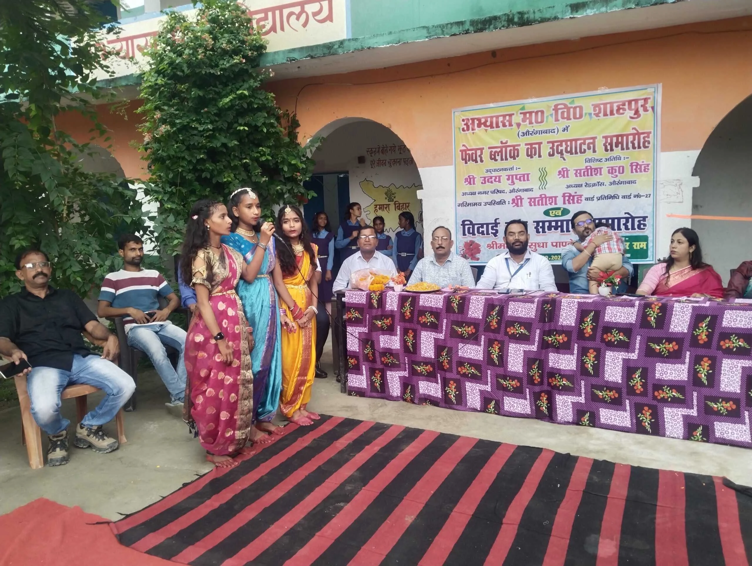 औरंगाबाद। शहर के शाहपुर स्थित अभ्यास मध्य विद्यालय में कराये गये पेवर ब्लॉक के कार्य का उद्घाटन शनिवार को नगर परिषद के अध्यक्ष उदय प्रसाद गुप्ता ने किया। इस दौरान विद्यालय की शिक्षिका सुधा पांडेय का विदाई समारोह भी आयोजित किया गया।