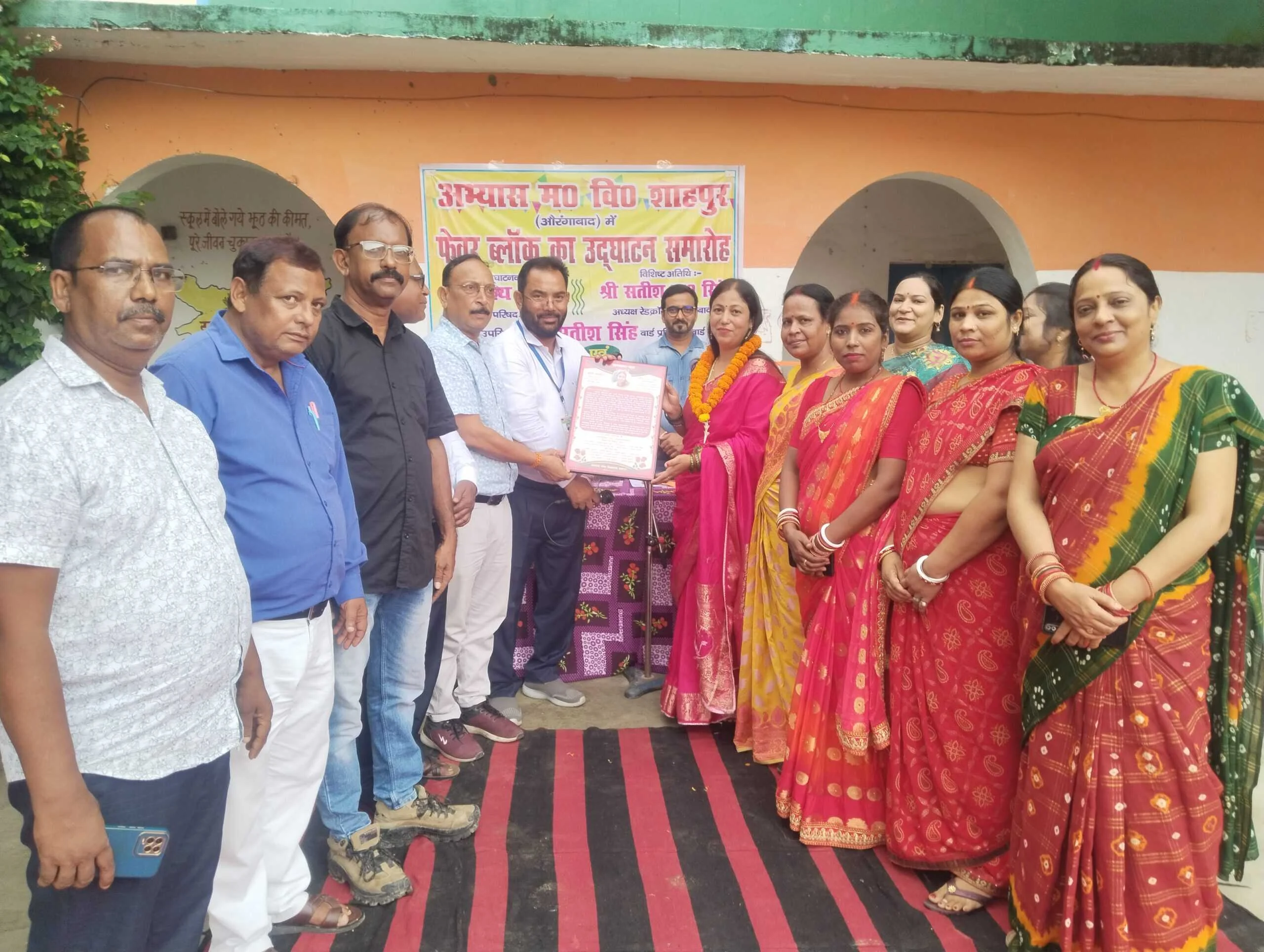 अभ्यास मध्य विद्यालय में कराये गये पेवर ब्लॉक के कार्य का हुआ उद्घाटन