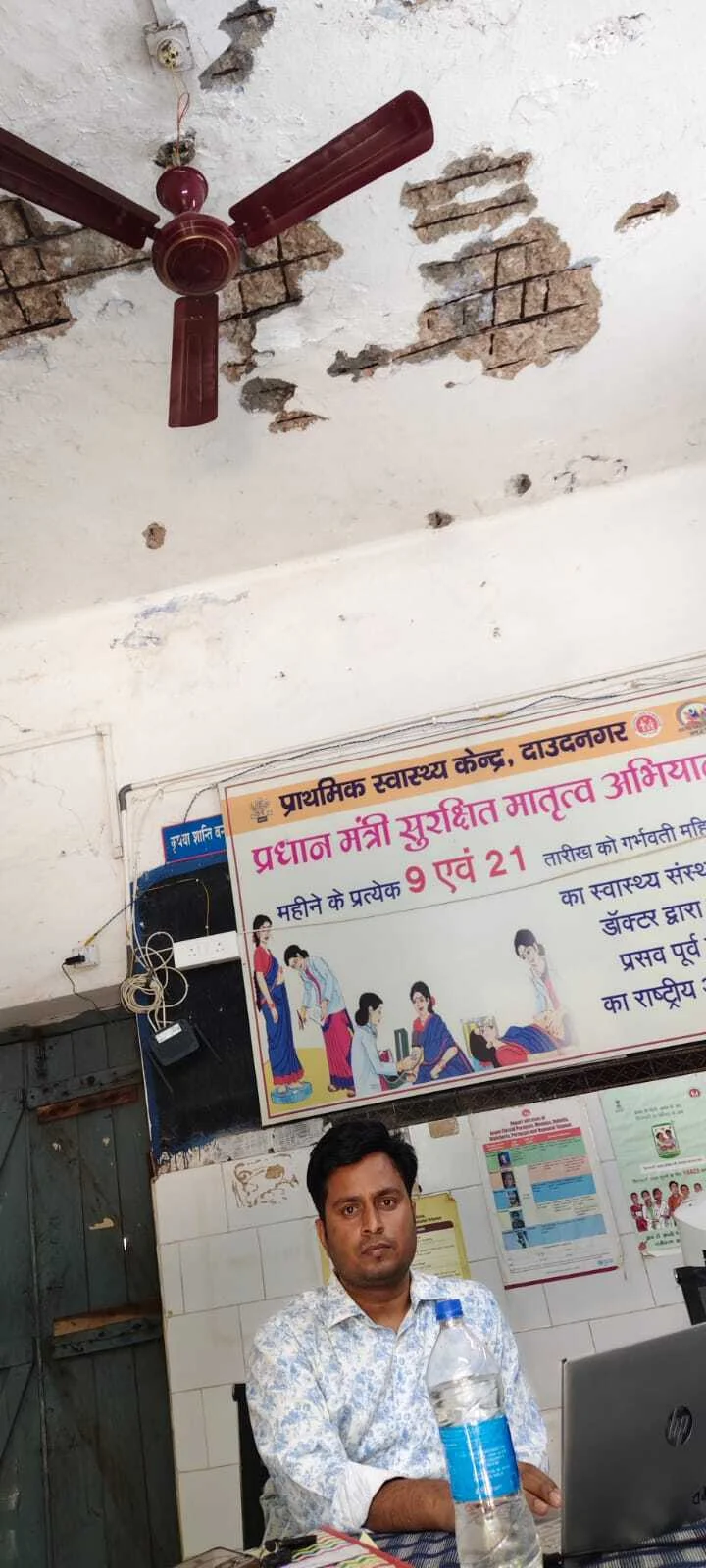 चिकित्सा पदाधिकारी डॉक्टर अनमोल कुमार बताते हैं कि डर के बीच ही काम करते हैं। कई बार छत का प्लास्टर टूट कर गिरा है। लगभग 100 मरीज इलाज के लिए ओपीडी में आते हैं। इस कमरे में एसी नहीं है। डा. अनमोल कहते हैं कि पंखा इसलिए नहीं चलाते कि तपती दुपहरी में लू न मार दे।