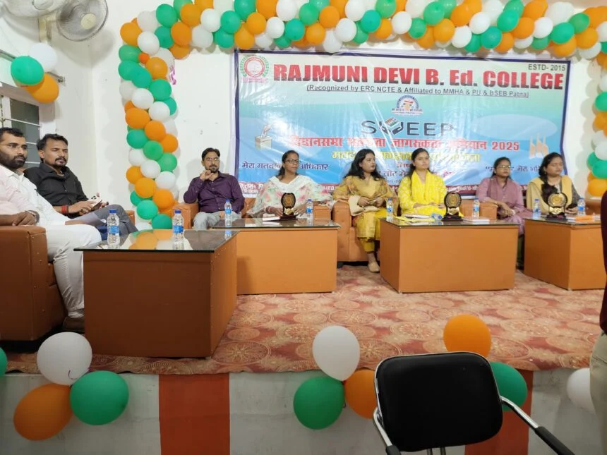 औरंगाबाद। आज राजमुनी देवी बीएड कॉलेज, औरंगाबाद में स्वीप के आदेशानुसार आगामी विधानसभा आम निर्वाचन 2025 के अंतर्गत मतदाता जागरूकता कार्यक्रम के तहत मतदाता जागरूकता प्रतियोगिता (क्विज प्रतियोगिता) तथा मतदाता जागरूकता शपथ का कार्यक्रम किया गया। इसमें अतिथि के रूप में एडीएमो अंतरा कुमारी, एबीएफ आसमा कुमारी, नेहा कुमारी, पिंकी कुमारी एवं स्नेहा कुमारी उपस्थित थे।