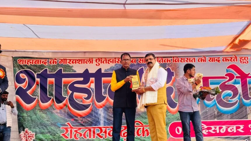 डेहरी ऑन सोन (रोहतास)। शाहाबाद महोत्सव के दौरान आयोजित सम्मान समारोह में बिहार पुलिस एसोसिएशन के अध्यक्ष मृत्युंजय सिंह को कार्यक्रम के संयोजक अखिलेश सिंह द्वारा सम्मानित किया गया। इस अवसर पर उन्होंने महोत्सव के सह–संयोजक संजय पासवान की भी जमकर प्रशंसा की और आयोजन की भव्यता की सराहना की।
