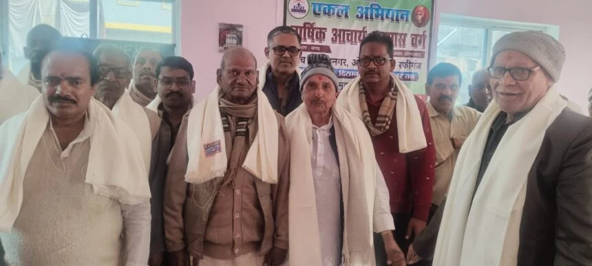 ओबरा (औरंगाबाद)। ओबरा मुख्यालय स्थित चौरसिया सामुदायिक भवन में चल रहा एकल अभियान का वार्षिक पांच दिवसीय प्रशिक्षण रविवार को सम्पन्न हो गया। प्रशिक्षण कार्यक्रम का उद्घाटन अध्यक्ष प्रोफेसर रामाधार सिंह सहित अन्य अतिथियों ने दीप प्रज्वलित कर किया, जबकि कार्यक्रम का संचालन अभियान के पंडित आनंद सिंह ने किया।