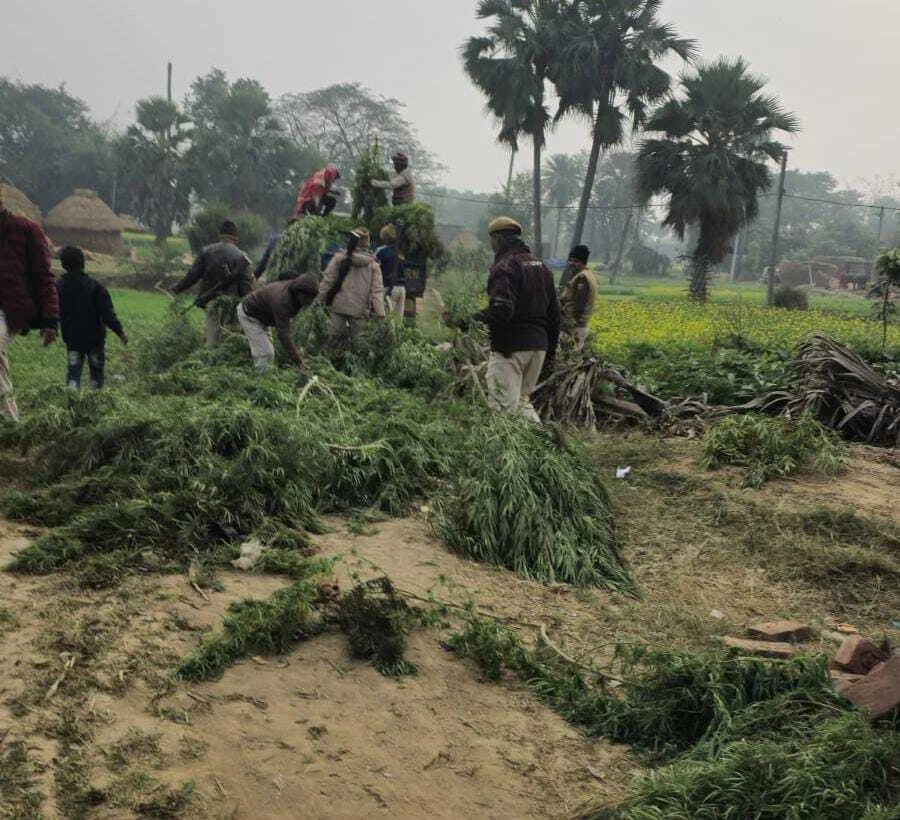 मादक पदार्थ के खिलाफ कादिरगंज पुलिस ने 4 क्विंटल गांजे की फसल को किया नष्ट