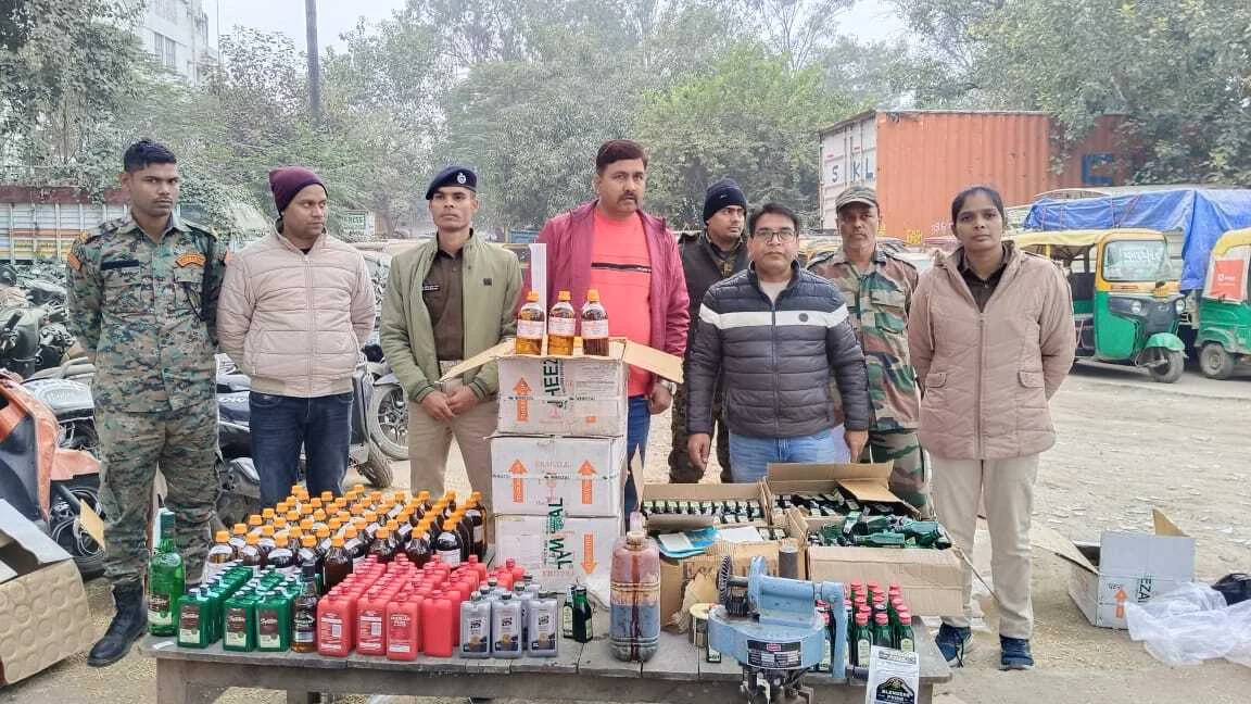 नकली शराब विदेशी फैक्ट्री का भंडाफोड़, धंधेबाज फरार