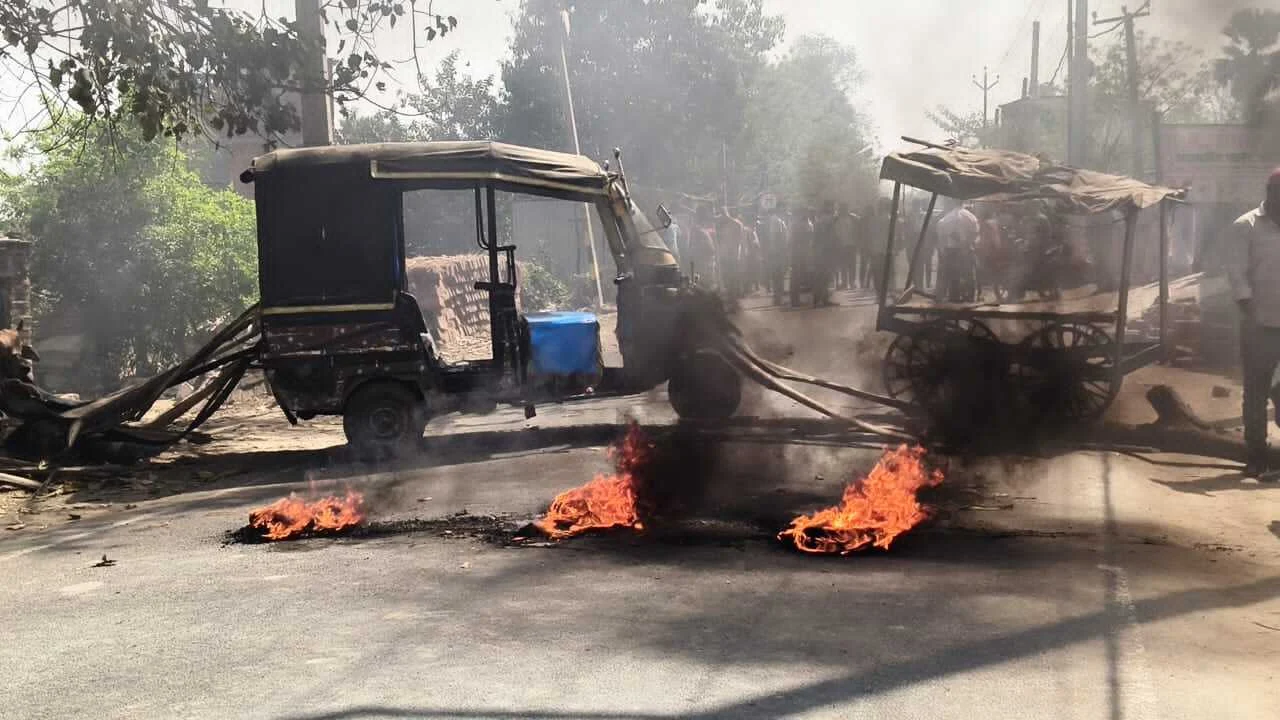 स्थानीय लोगों ने सड़क पर टायर जलाकर 2 घंटो तक किया सड़क…