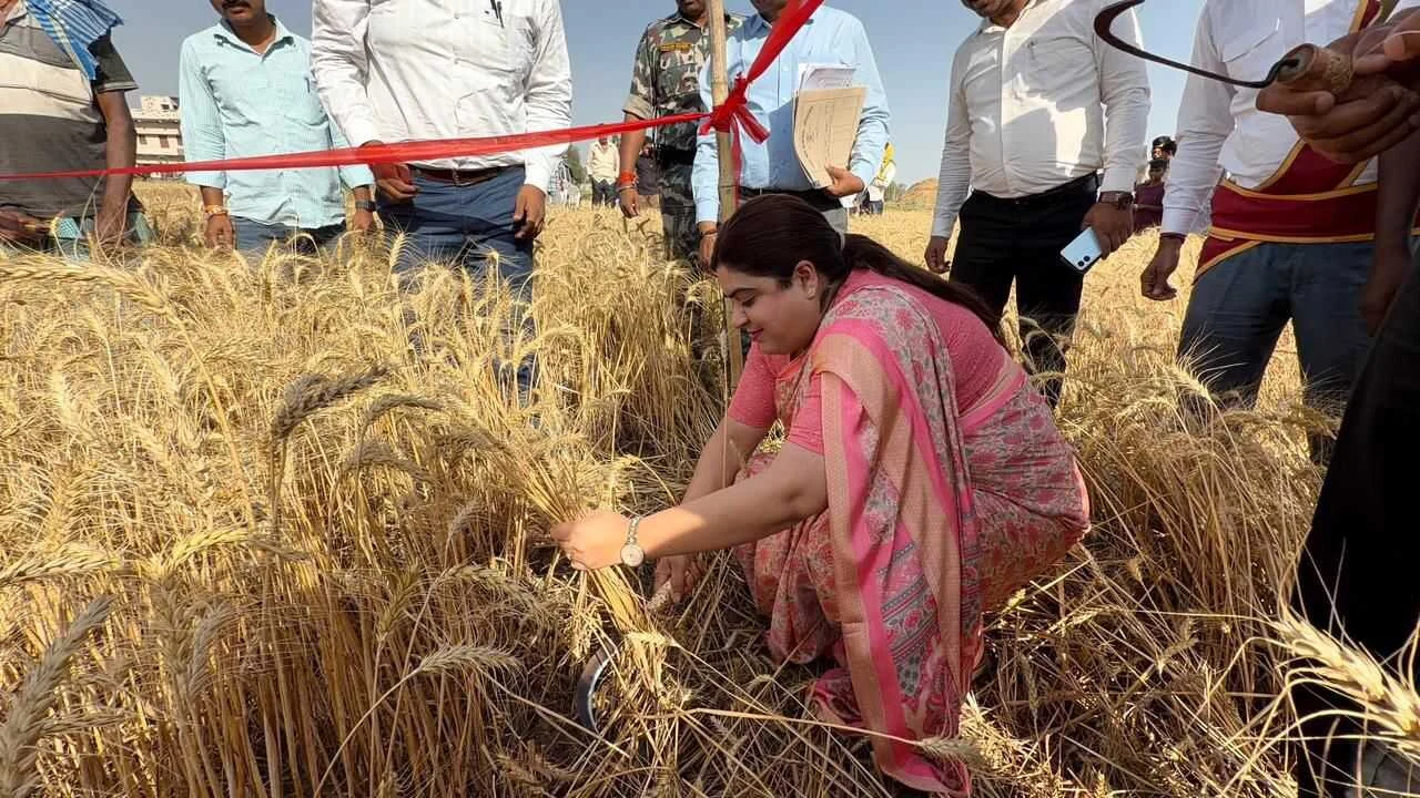 डीएम ने गेहूं काटकर किया फसल कटनी प्रयोग का निरीक्षण