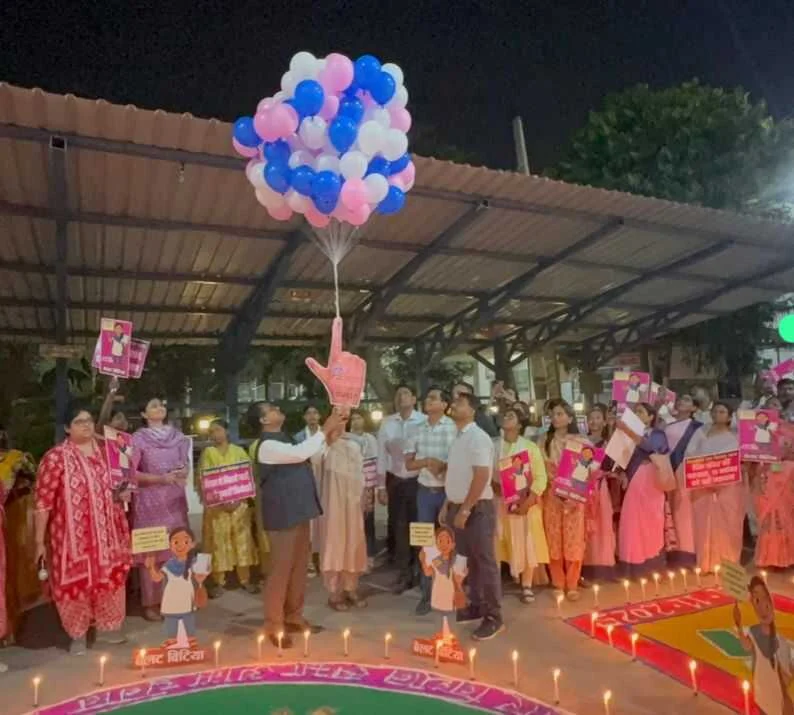 रंगोली के मध्य में मतदाता जागरूकता की प्रतीक “बैलट बिटिया” की आकर्षक आकृति बनाई गई, जिसके समक्ष दीप प्रज्ज्वलित कर मतदान के प्रति निष्ठा, संकल्प और सजगता का संदेश दिया गया।
