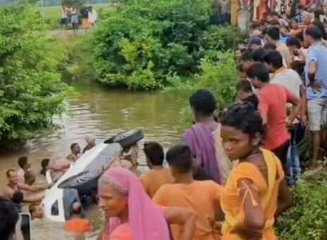 मसौढ़ी। दशहरा मेला घूमने जा रहे लोगों की एक तेज रफ्तार स्कॉर्पियो धनरूआ थाना क्षेत्र के नदपुरा गांव के समीप पइन में पलट गई, जहां स्कॉर्पियो में सवार दो युवकों की मौत मौके पर ही हो गई, जबकि तीन लोग किसी तरह से बाहर निकल कर जान बचा पाये। घटना के बाद आसपास के ग्रामीण दौड़े और किसी तरह से डूबे हुए स्कॉर्पियो को बाहर निकालने मे जुटे।